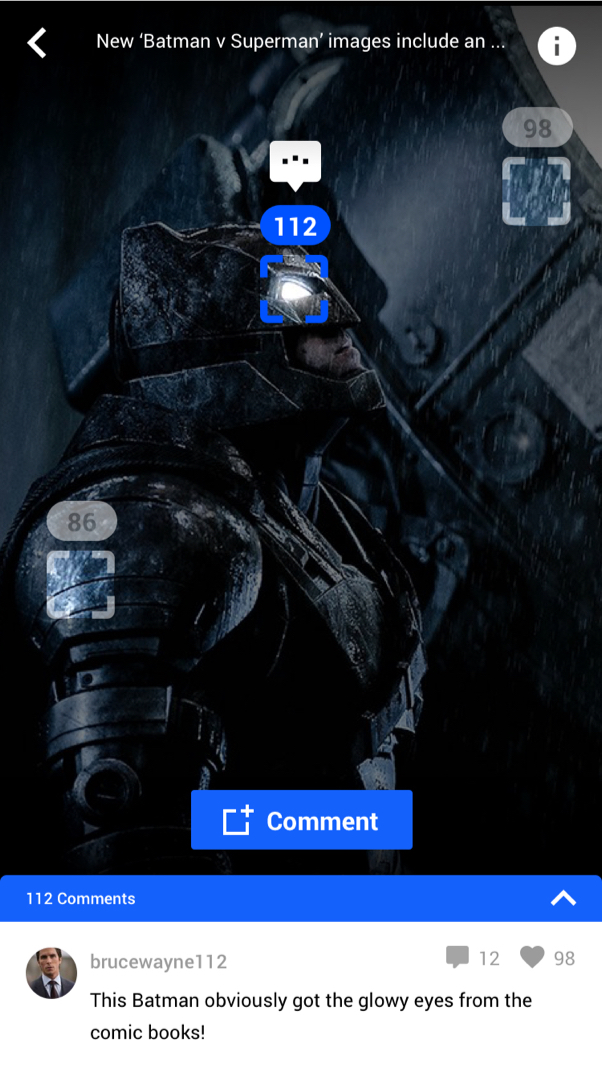 With FanCon, he can comment in context of a photo to make clear references