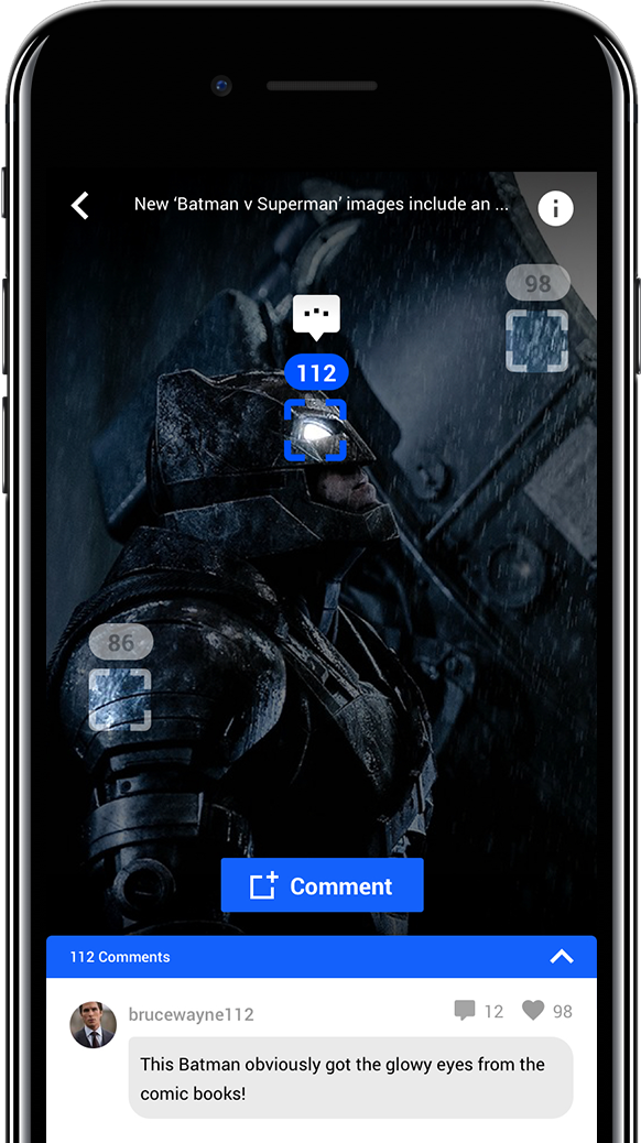 Small details were added to recreate that feeling of someone having a discussion right next to you. The number of comments for each annotation would update in real-time to give the user the impression that he was not commenting in the post alone. To further expand that feeling, an animating chat icon would appear whenever a user was typing. This created an even more authentic discussion experience which helped entice users to comment. With these small details, we can still simulate a live experience without the need of a live video discussion and create a discussion experience that everyone can contribute to.