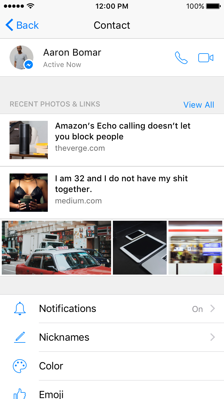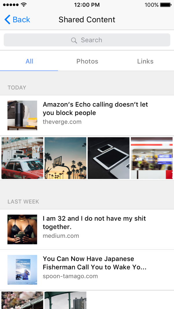 Most of my pro users were familiar with the Shared Images feature found in Messenger so it was natural for them to see shared links grouped together with it. The only concern that was brought up by users was that the shared images were competing with the shared links and users would only be able to see one at a time.