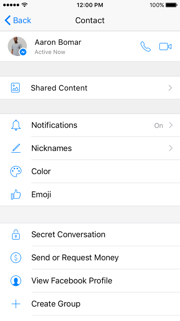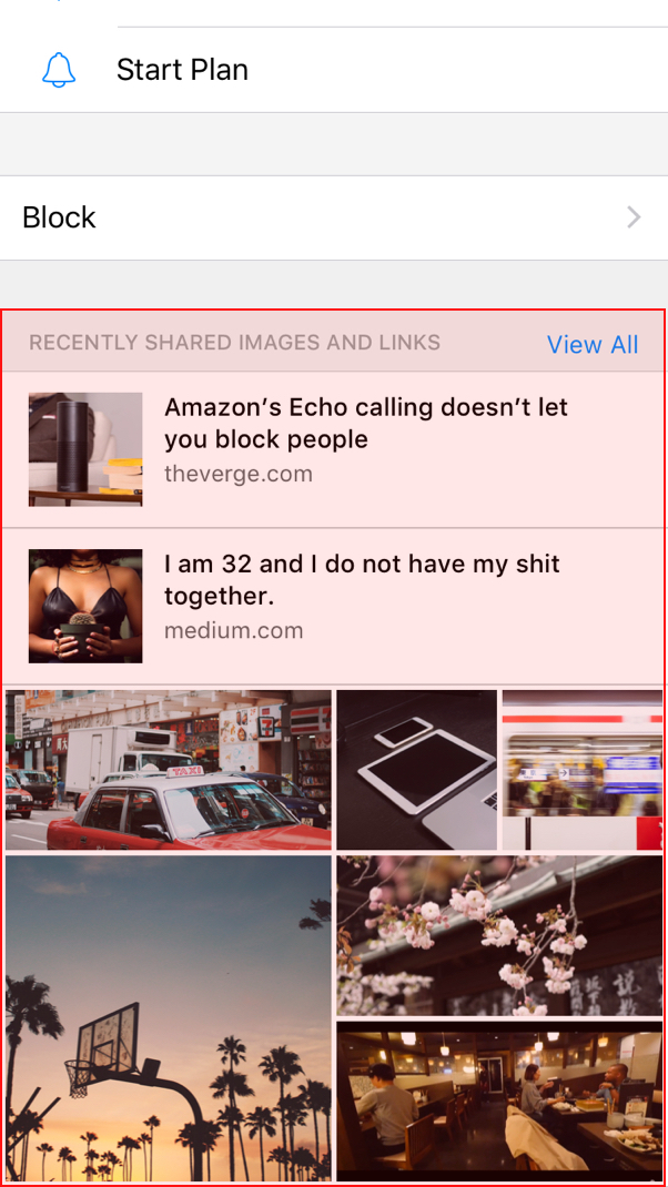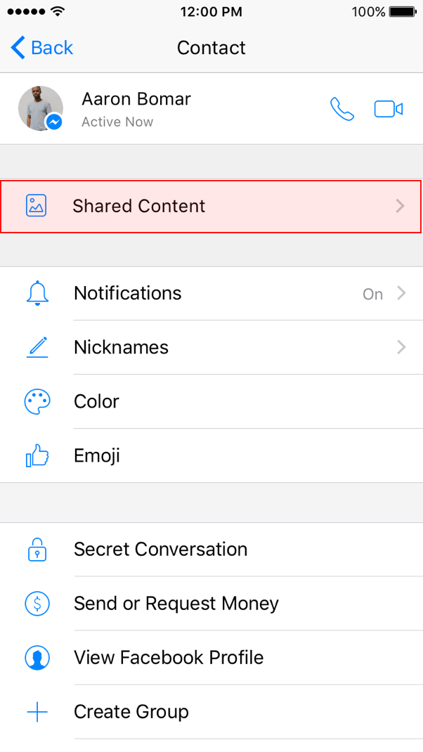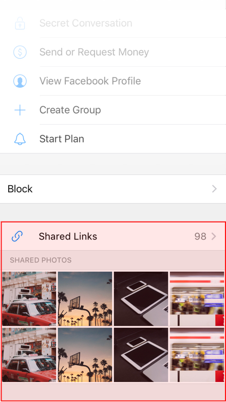 Tapping on the user’s name at the top of the conversation will lead to the user’s profile where he or she can find all the content that was shared in the conversation.