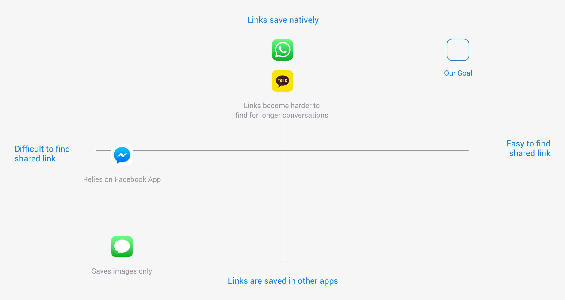 More importantly, when users look for a link shared in a conversation by a friend, they immediately associate that link to the conversation in their memory; NOT the other apps they saved them into.