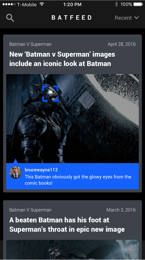 For a more expressive commenting experience, I overlaid the annotation comments over the image that was being discussed. I previously had issues with scalability with long comments which led me to use a card that would contain the comments. This card would take up half the screen and the comments contained within it would reflect the annotations that were being selected. This card would always stay in context of the image that was being discussed which allowed for more authentic and engaging conversations.